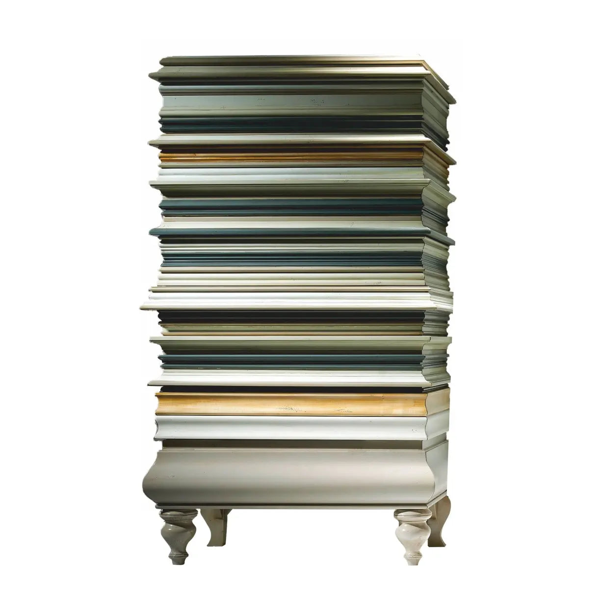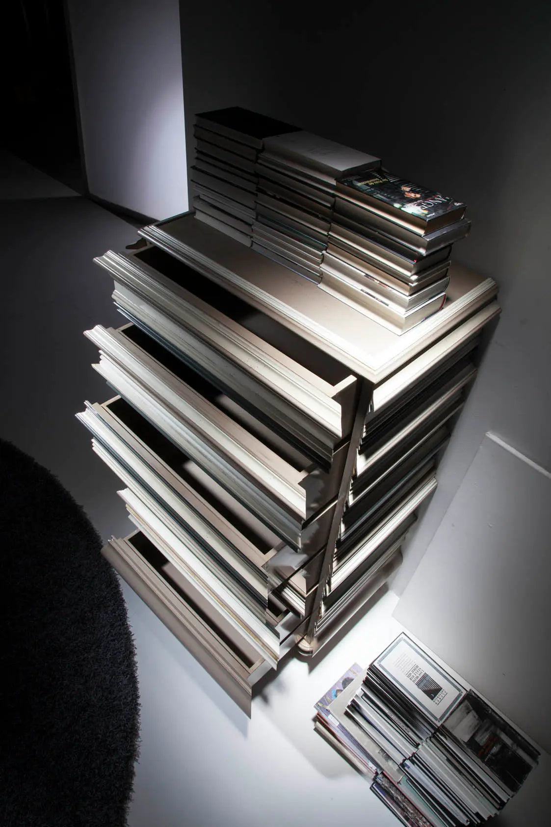 El embrujo de las librerías, el aroma de la tinta impresa, el misterio del papel callando a gritos. El perfil de la serie La Mèr recuerda el de los libros apilados, aguardando su momento de ser leídos y absorbidos, devorados con el ansia primitiva de la inteligencia y la imaginación. Son tomos de colecciones diferentes, que reúnen en sus páginas la experiencia altiva de la palabra y nos brindan su emotiva sabiduría desde la inmovilidad del tiempo. Camuflados a la perfección entre la ilusión de libros apilados, nos encontramos sus seis cajones, tímidos pero espaciosos, que guardarán tus pertenencias como un secreto. Personalizable en medida y acabado.