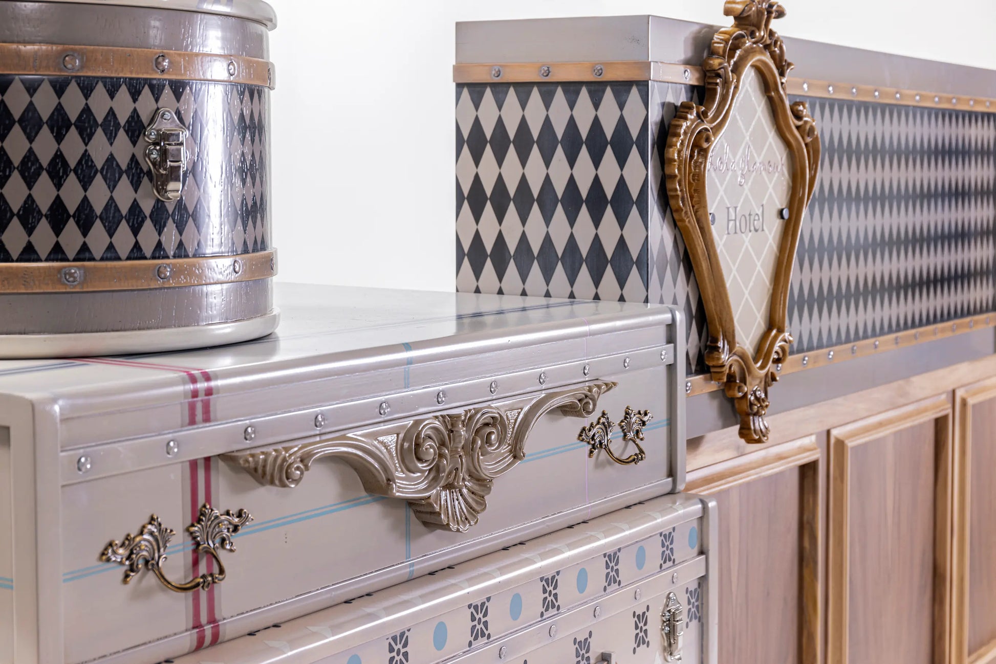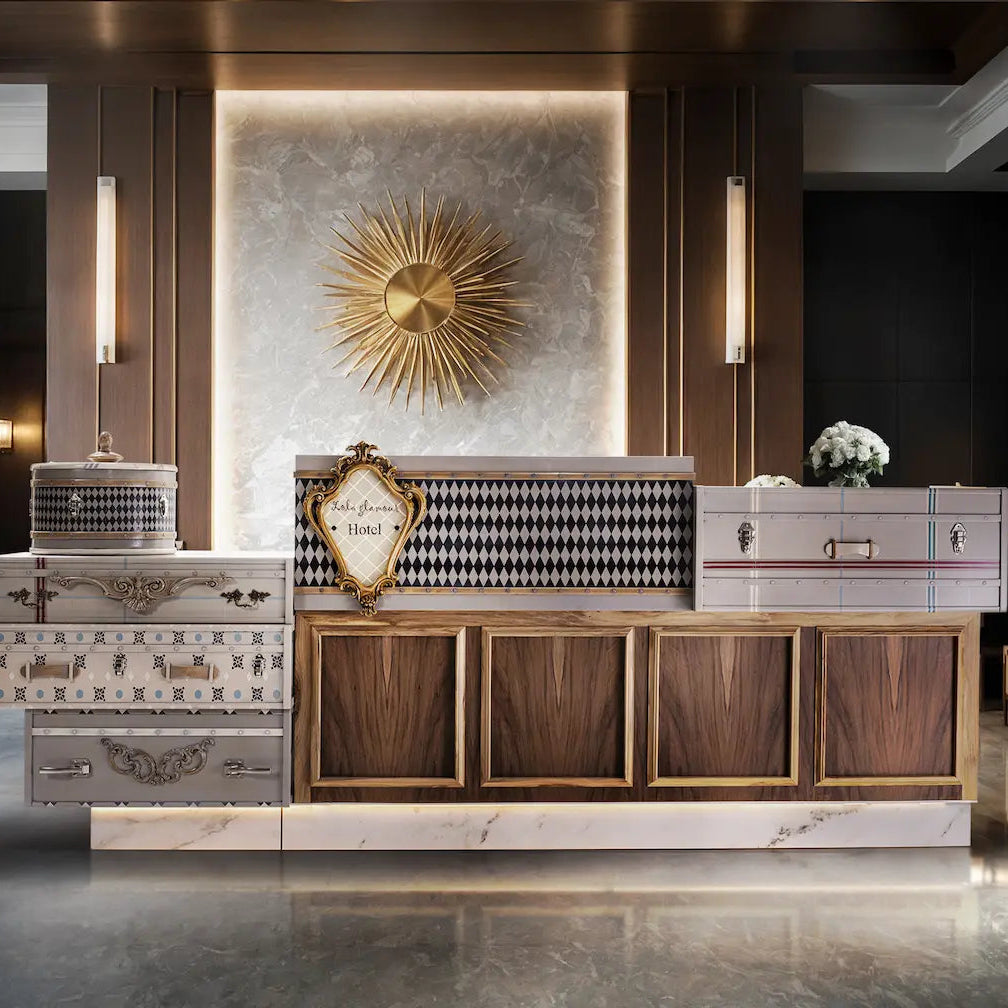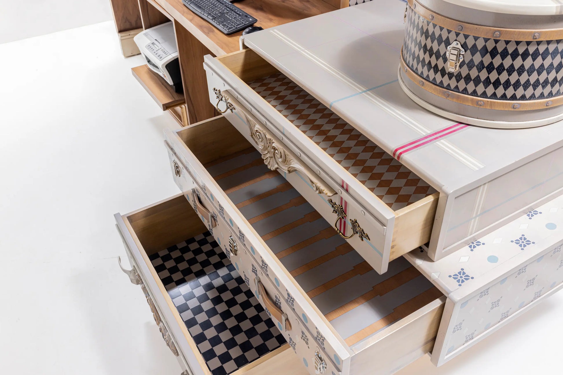 Dicen que el que llega primero no pregunta por la recepción, pregunta por el mueble. Entre molduras doradas, cajones que parecen baúles de viaje y patrones sacados de un escenario, este mostrador no da la bienvenida: la celebra. Tiene algo de teatro y algo de magia antigua, como si hubiera pertenecido a un hotel que solo existe en los sueños. Cada módulo es distinto, cada acabado cuenta una historia. Madera natural, mármol, relieves, espejos, contrastes que no temen al exceso. Un mueble de diseño artesanal hecho para recibir con carácter y dejar huella desde el primer vistazo. Personalizable en medida y acabado.