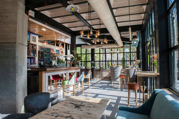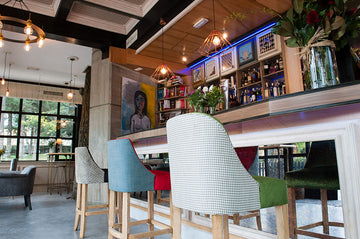 Il bar El Kiosco è uno dei nostri progetti più apprezzati perché ha comportato il recupero di uno spazio abbandonato in una posizione iconica della città, trasformandolo nel bar più trendy dove tutti vogliono andare. Il locale presenta un bancone con uno specchio a zigzag, un retrobanco ricco di dettagli e colori, soffitti e rivestimenti murali unici, lampade e arredi caratteristici. L'intero concept permette di godere della luce e della bellezza naturale del parco dall'interno.