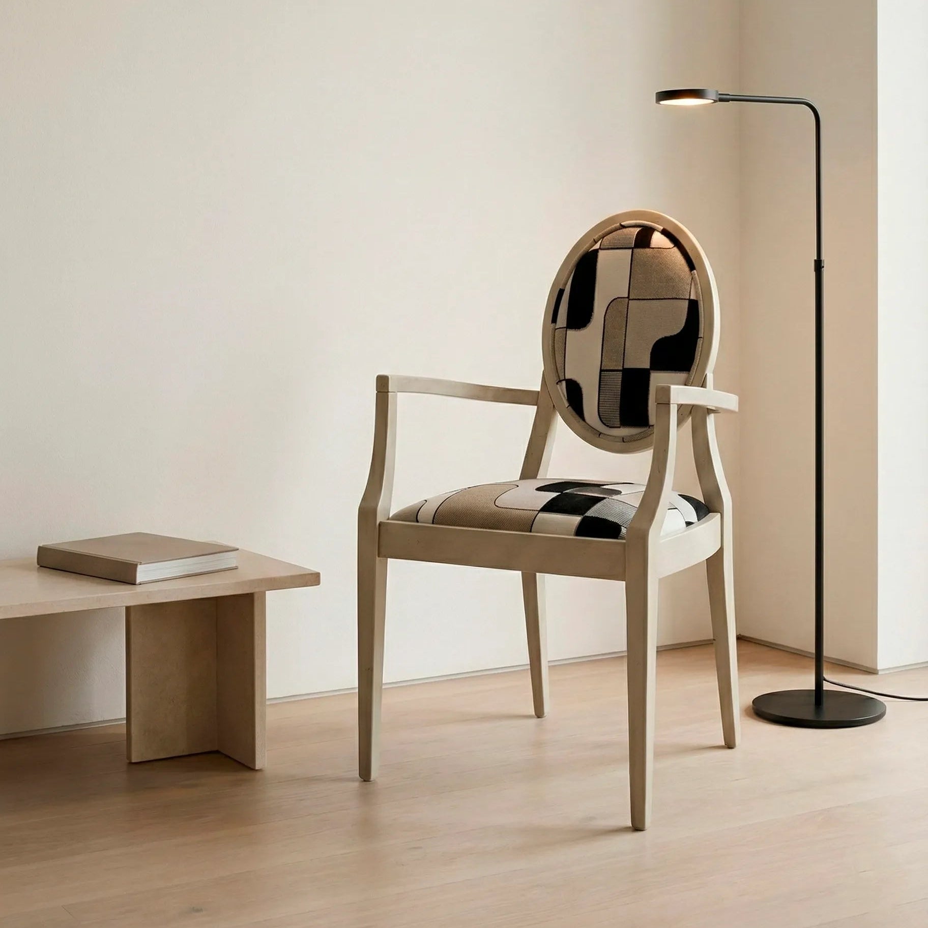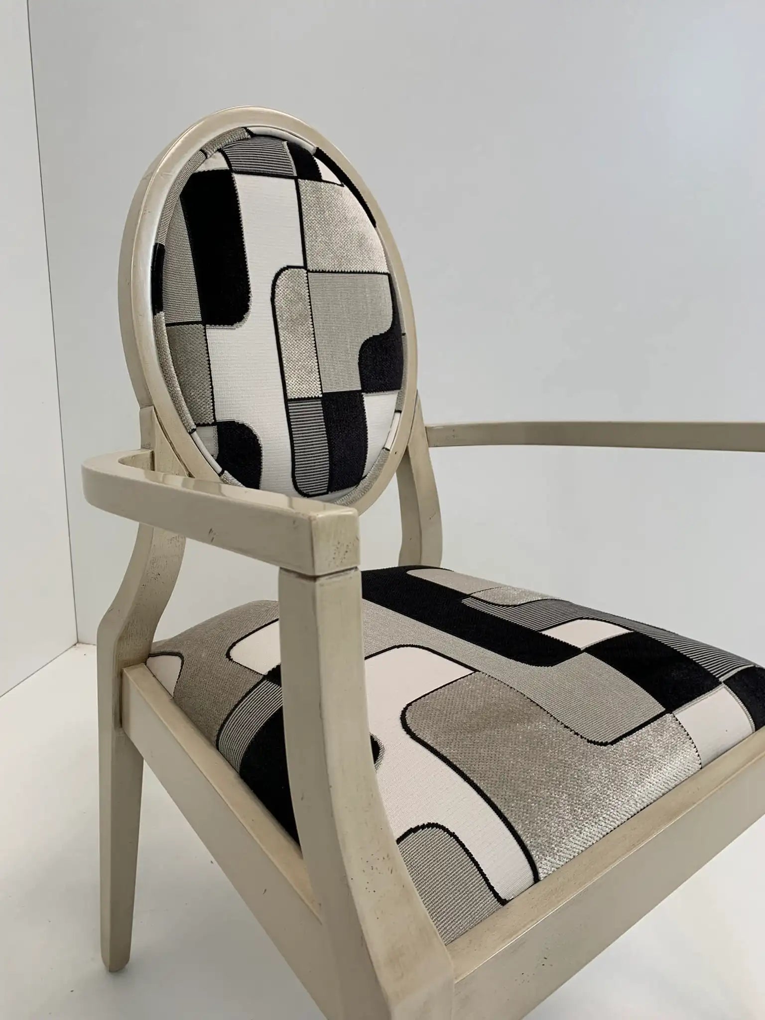 Poltrona in legno di faggio con struttura laccata color avorio.