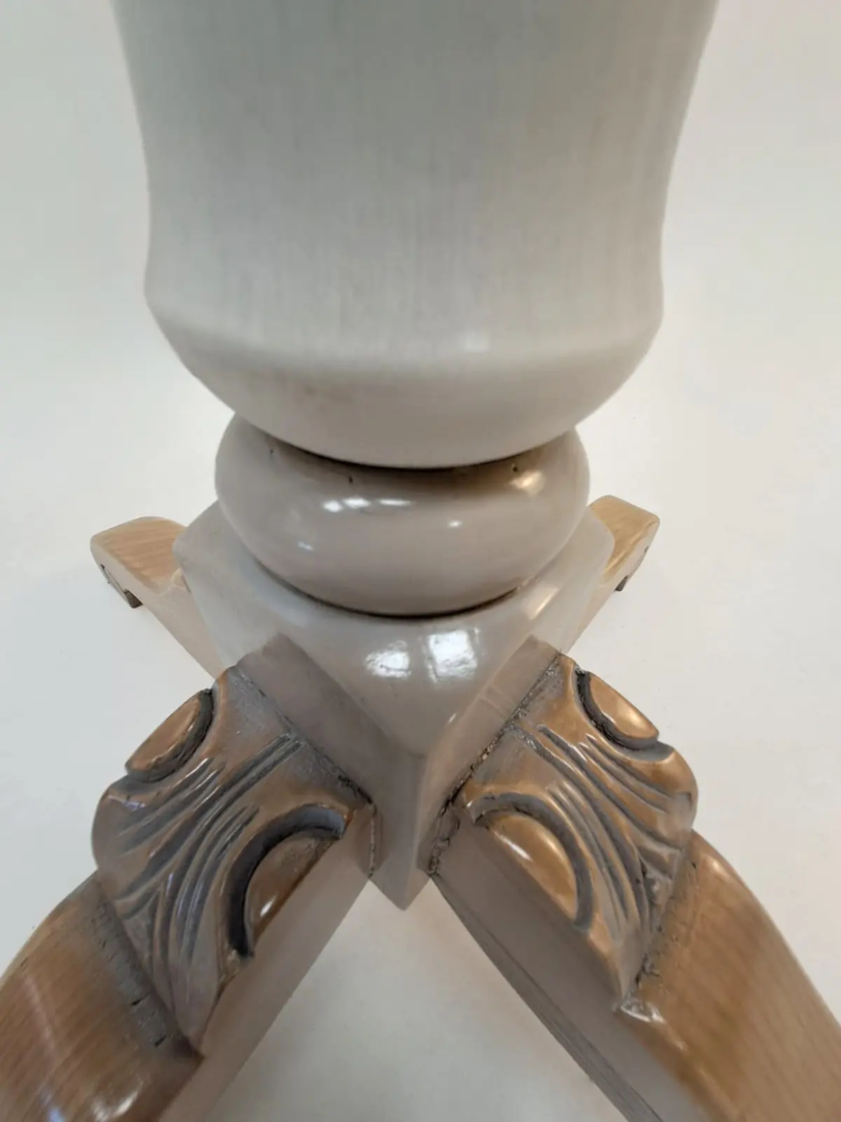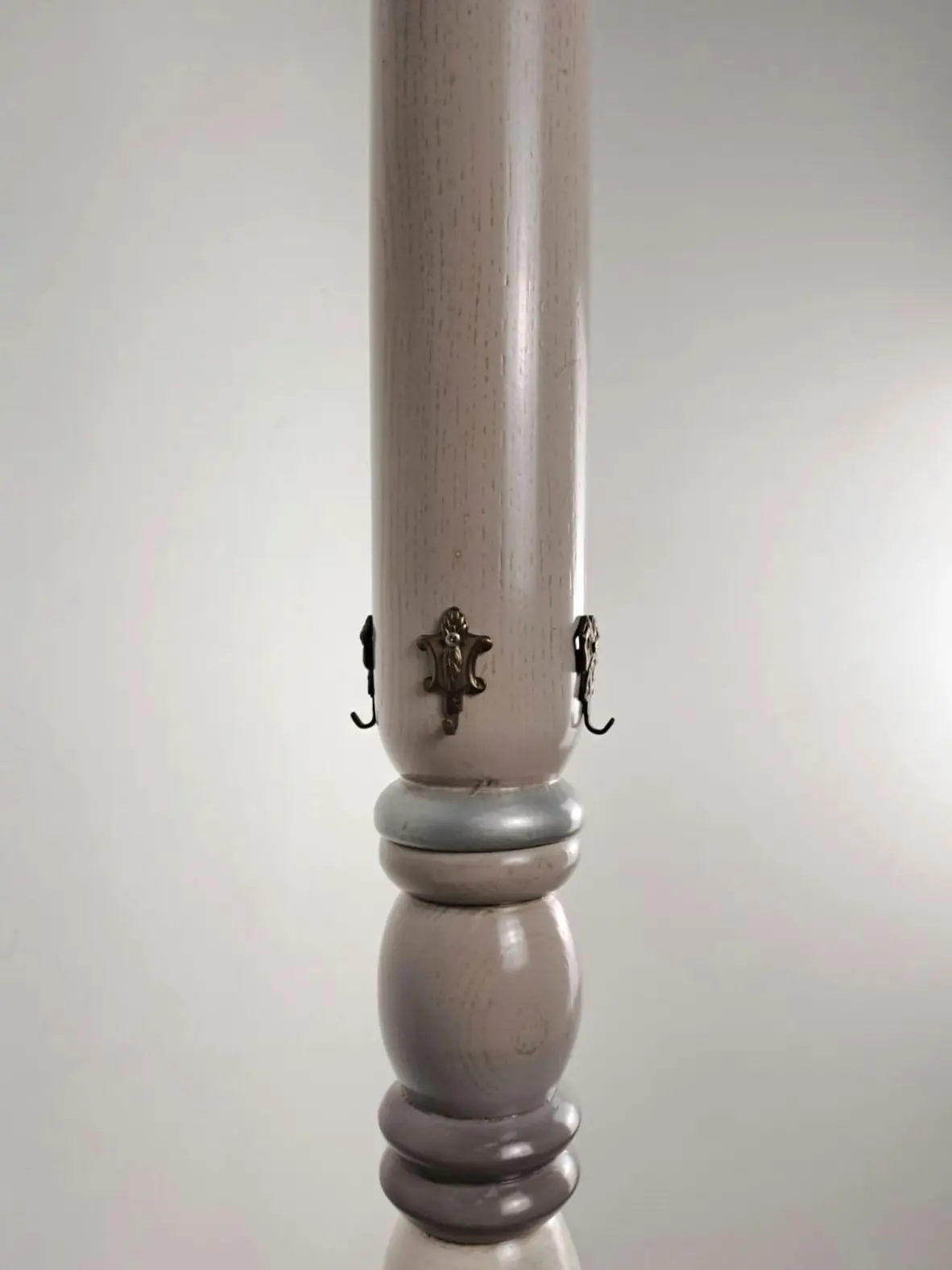 La estructura vertical mantiene un perfil estilizado que facilita su integración en espacios donde es necesario conservar la ligereza visual. El remate superior incorpora volutas suaves que actúan como puntos de apoyo para prendas, manteniendo la pureza del diseño al no incluir elementos metálicos. La base tripodal otorga estabilidad sin ocupar demasiada superficie en el suelo. El conjunto del perchero D’Avorio crea una sensación de pieza escultórica, aunque conserva una función cotidiana.