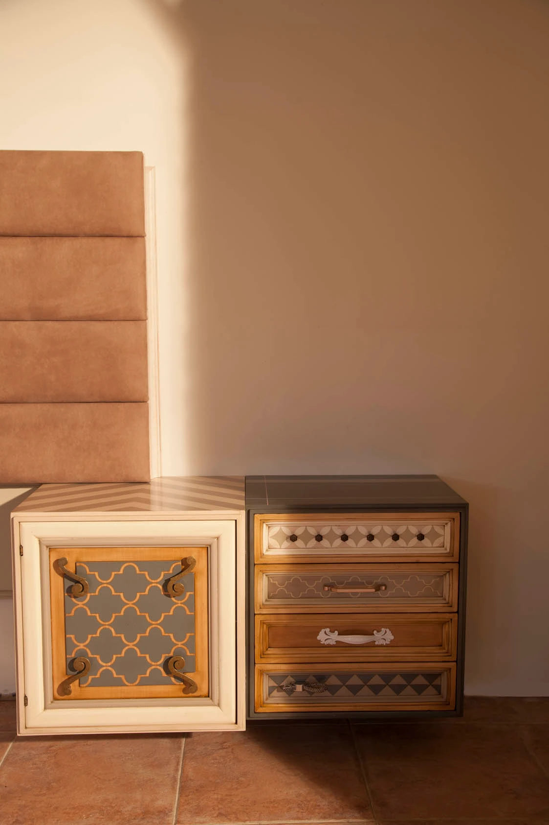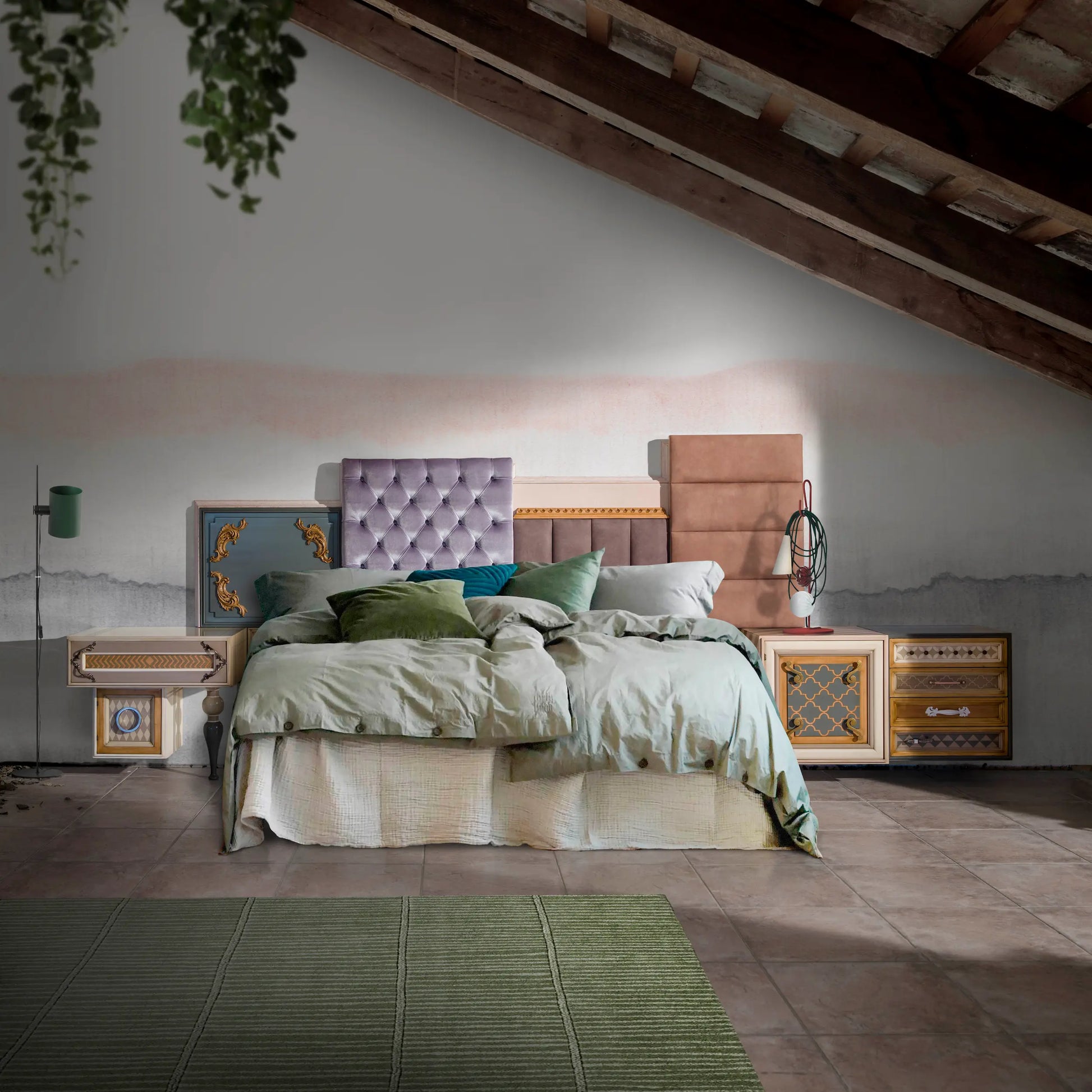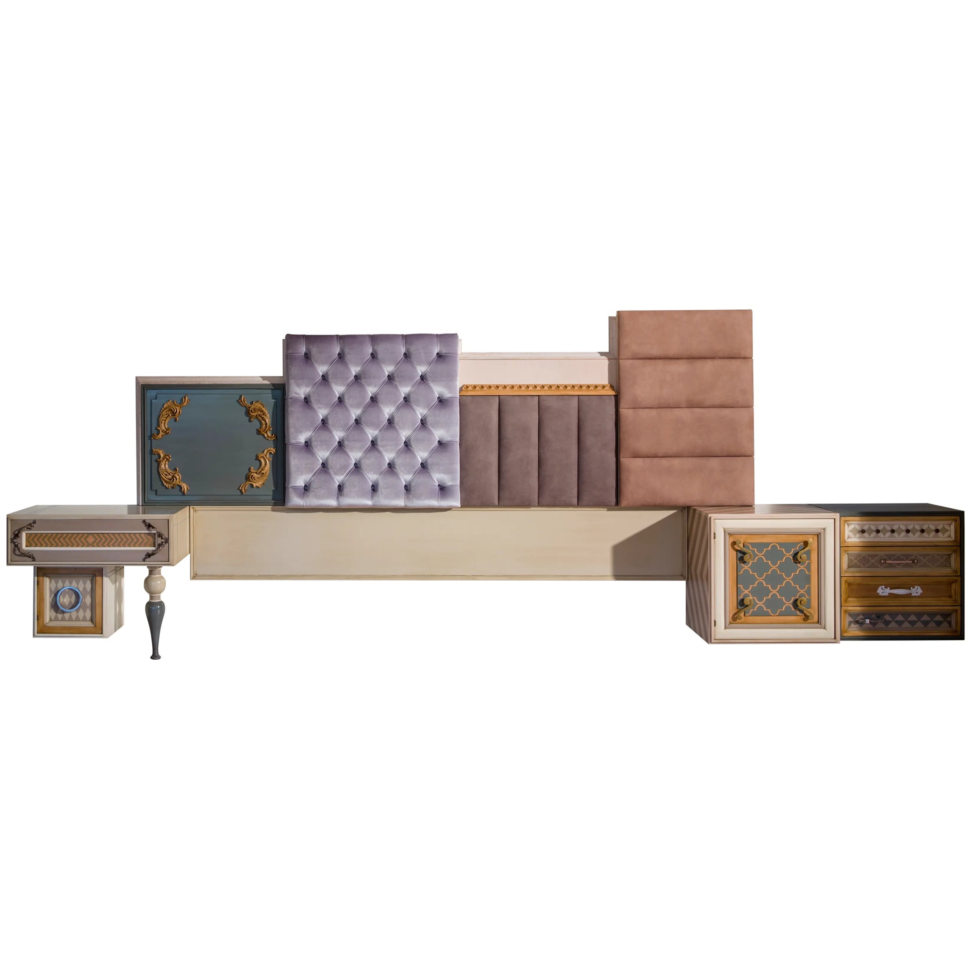 Si en tu dormitorio solo tienes una pared para decorar, esta es una solución decorativa y funcional a partes iguales. Un cabecero que combina piezas tapizadas y en madera para dar confort y personalidad, arropado por módulos de la serie One para guardar y completar el espacio. Todo con nuestro juego característicos de volúmenes que aportan movimiento y una combinación de colores y texturas que atrapan nuestros sentidos. Una propuesta, que simplificada, hemos utilizado también en amueblamiento de hoteles que buscan ofrecer a sus clientes experiencias distintas.